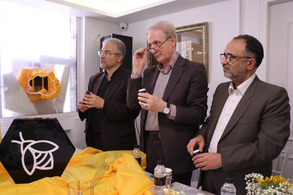 در این مراسم که پس از پایان نشست وبیناری روز جهانی زنبور برگزار گردید، فروشگاه جدید اکسیر در منطقه نیاوران تهران توسط جناب آقای دکتر حسن نژاد معاون محترم امور تولیدات دامی وزارت جهاد کشاورزی و جناب آقای دکتر پیمان فلسفی نایب رئیس کمیسیون کشاورزی مجلس شورای اسلامی و جناب آقای مهندس عوض علیزاده مقدم رئیس هیأت مدیره و مدیرعامل شرکت مادر تخصصی افتتاح و از محصول کپسول خوراکی ژل رویال با نام ارمغان اکسیر رونمایی گردید.